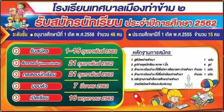 รับสมัครนักเรียน ประจำปีการศึกษา ๒๕๖๒