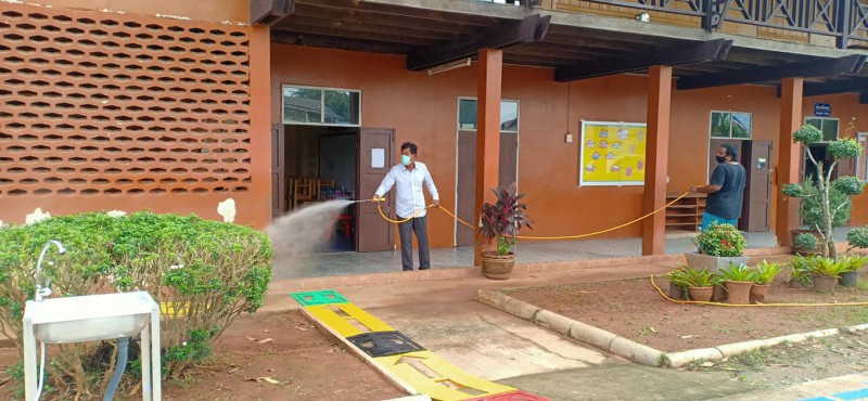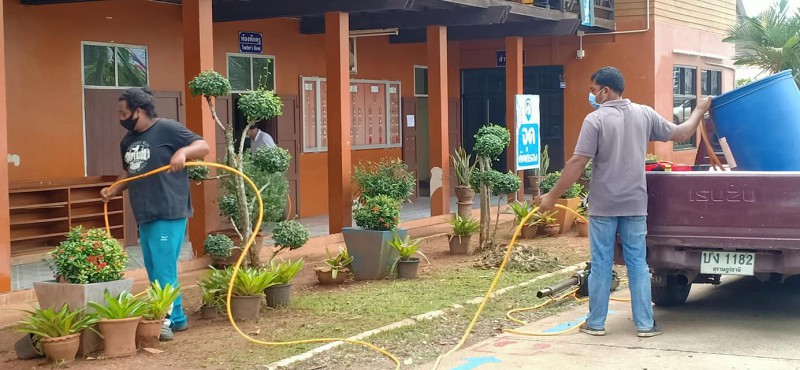 25 มิ.ย. 63 เจ้าหน้าที่กองสาธารณสุข เทศบาลเมืองท่าข้าม พ่นยาฆ่าเชื้อโควิด-19 ศพด.ชุมชนฝ่าย(ท่าเจริญเวช) และอาคารเรียน ท.๒