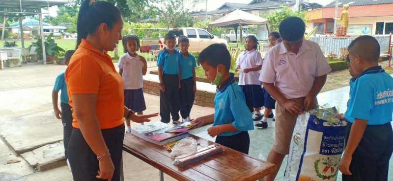 22 ต.ค.63 โครงการโรงเรียนรักษ์สิ่งแวดล้อม กิจกรรมให้นักเรียนนำ ขวดน้ำแลกอุปกรณ์การเรียน