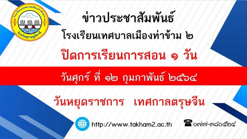 11 ก.พ. 64 ประชาสัมพันธ์ วันหยุด เทศกาลตรุษจีน