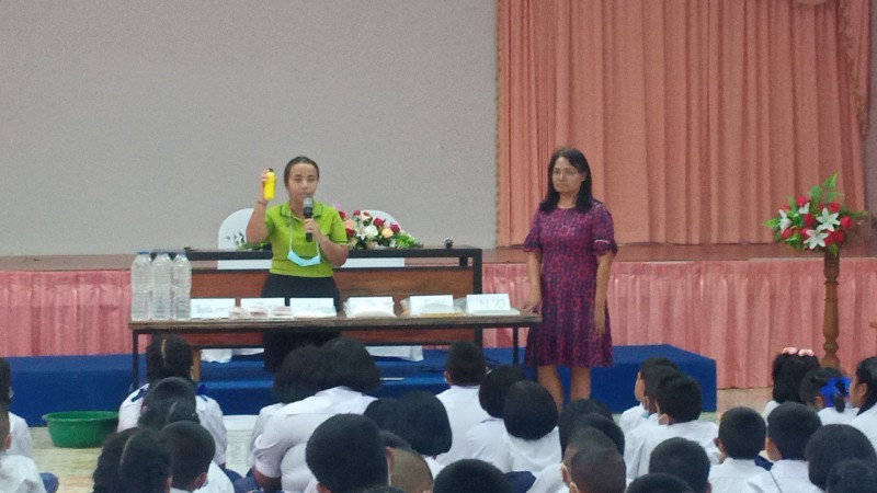 โรงเรียนเทศบาลเมืองท่าข้าม ๒ จัดทำโครงการทักษะชีวิตเศรษฐกิจพอเพียง (กิจกรรมการทำน้ำยาล้างจาน) ให้แก่นักเรียนระดับชั้นประถมศึกษาปีที่ 1-6 โดยมีคุณครูสุดารัตน์ ธรรมาภิรมย์ (ครูอ้อย) เป็นวิทยากรให้ความรู้ในวันนี้ |