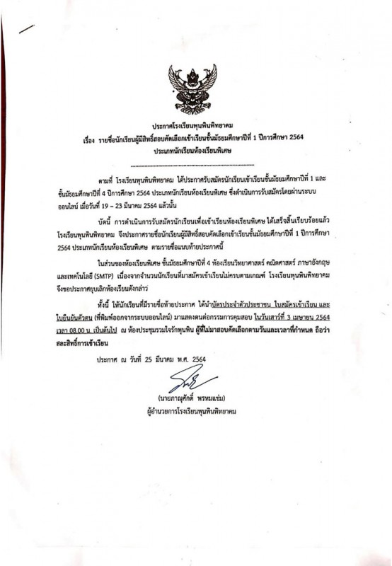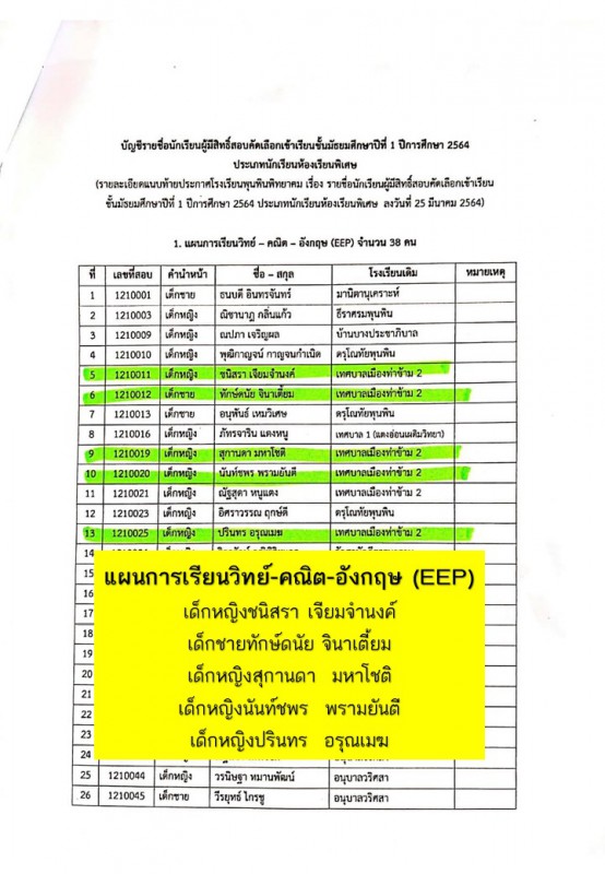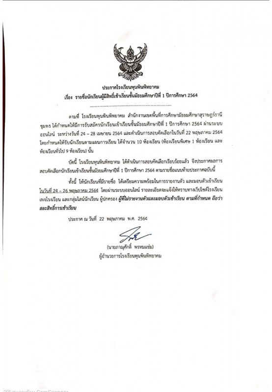 25 พ.ค. 64 นักเรียนชั้นประถมศึกษาปีที่ 6 รุ่นที่ 2 ผ่านการคัดเลือกเข้าศึกษาต่อในชั้นมัธยมศึกษาปีที่ 1 โรงเรียนพุนพินพิทยาคม