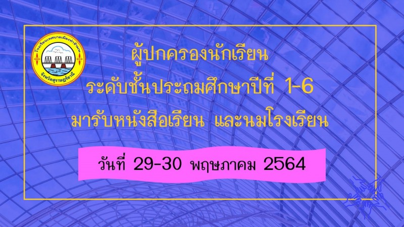 29-30 พ.ค.64 ผู้ปกครองนักเรียนระดับชั้นประถมศึกษาปีที่ 1-6 มารับหนังสือ สมุด อุปกรณ์การเรียนและใบงาน ปีการศึกษา 2564