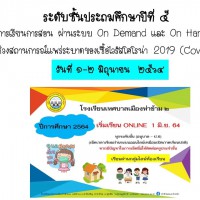 จัดการเรียนการสอน ผ่านระบบ On Demand และ On Hand ในช่วงสถานการณ์แพร่ระบาดของเชื้อไวรัสโคโรน่า 2019 (Covid-19) วันที่ 1-2 มิถุนายน 2564 ป.5