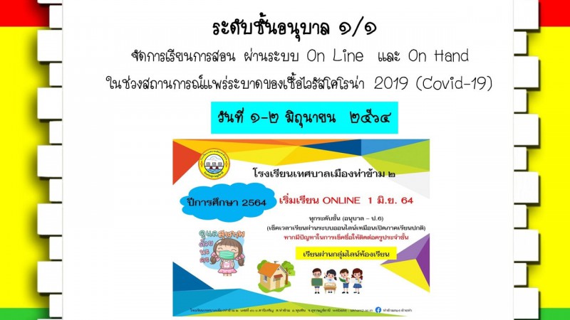 จัดการเรียนการสอน ผ่านระบบ On Demand และ On Hand ในช่วงสถานการณ์แพร่ระบาดของเชื้อไวรัสโคโรน่า 2019 (Covid-19) วันที่ 1-2 มิถุนายน 2564 อ.1/1