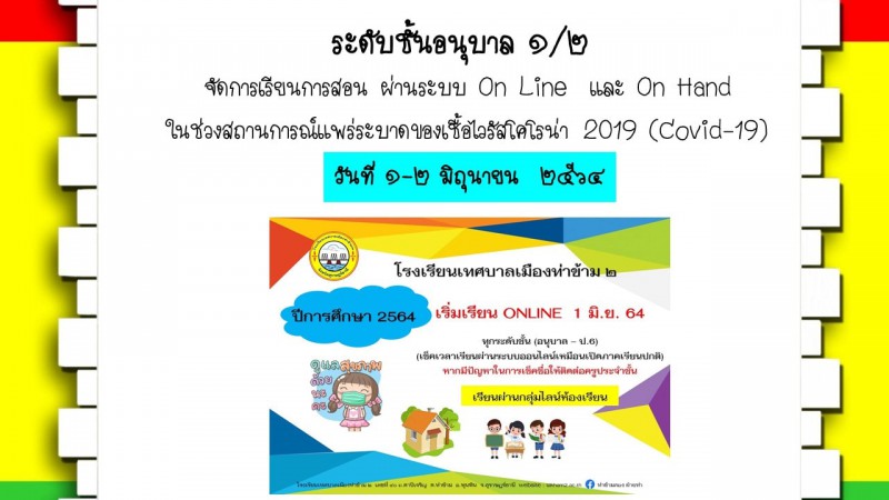 จัดการเรียนการสอน ผ่านระบบ On Demand และ On Hand ในช่วงสถานการณ์แพร่ระบาดของเชื้อไวรัสโคโรน่า 2019 (Covid-19) วันที่ 1-2 มิถุนายน 2564 อ.1/2