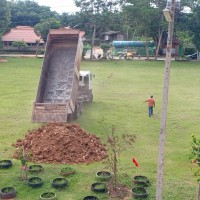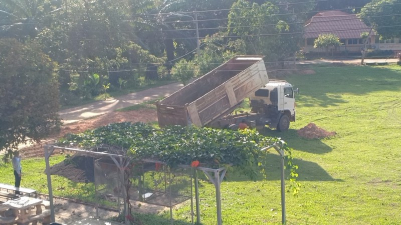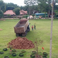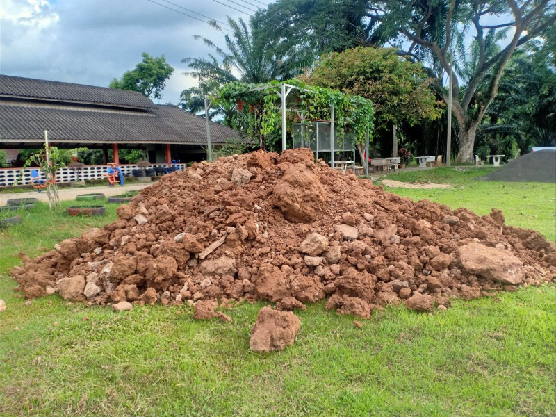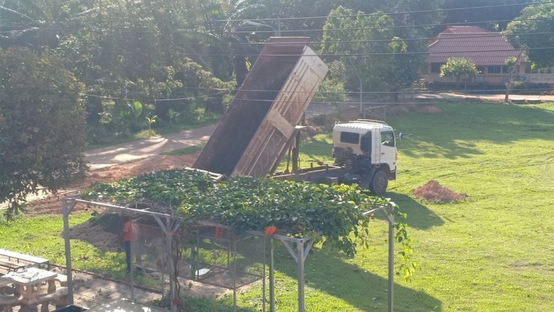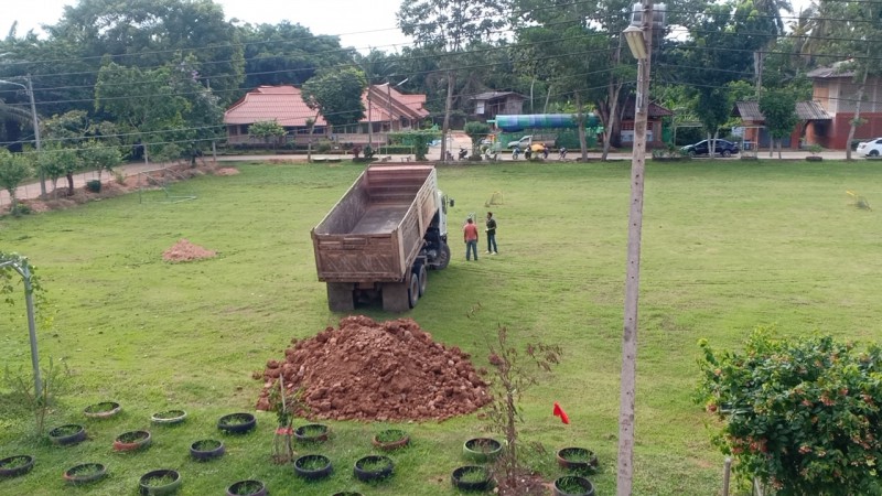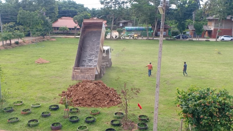 ท่านวสุ ประดิษฐพร นายกเทศมนตรีเมืองท่าข้าม มอบดินและทราย เพื่อปรับปรุงภูมิทัศน์ภายในโรงเรียน |