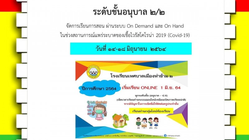 จัดการเรียนการสอน ผ่านระบบ On Demand และ On Hand ในช่วงสถานการณ์แพร่ระบาดของเชื้อไวรัสโคโรน่า 2019 (Covid-19) วันที่ 14-18 มิถุนายน 2564 อ.2/2