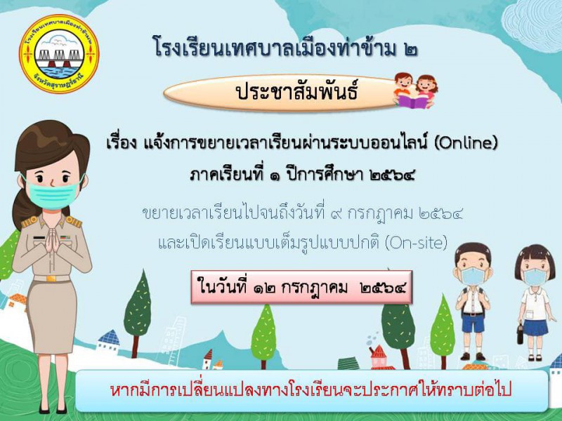 2 ก.ค. 64 แจ้งการขยายเวลาเรียนผ่านระบบออนไลน์ (Online)