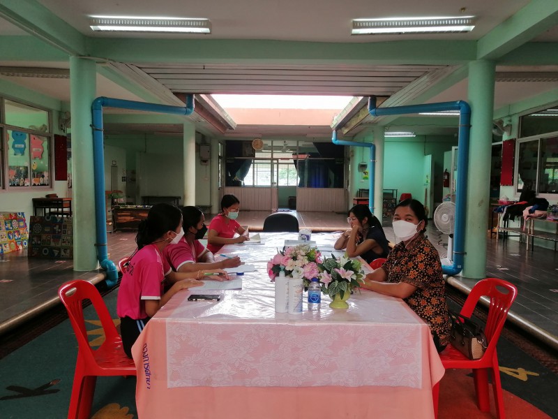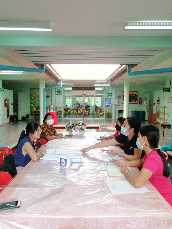 นางสาวอมรพรรณ พานแก้ว ศึกษานิเทศก์ และรองเสาวณีย์ รักษ์ทอง รักษาราชการแทนผู้บริหารสถานศึกษา ประชุมติดตามการทำ PLC ระดับ อนุบาล ภาคเรียนที่ ๒ ปีการศึกษา ๒๕๖๔