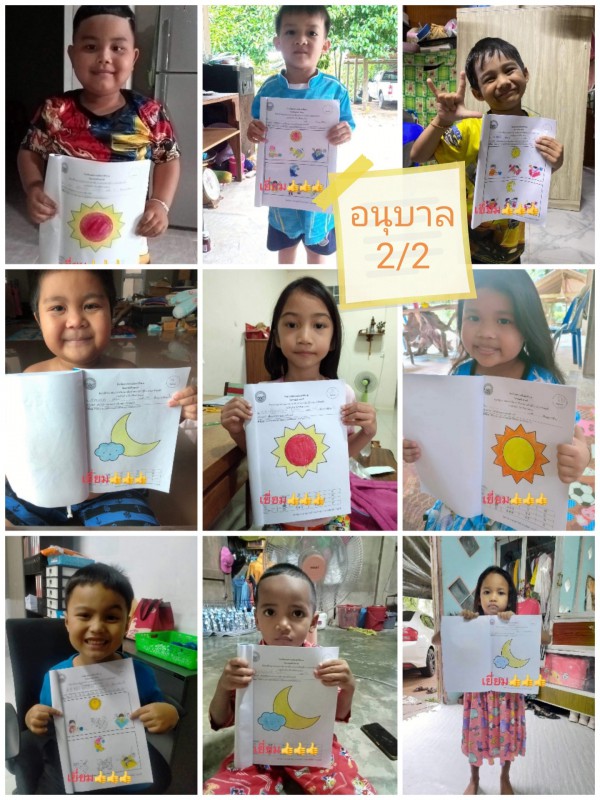 โรงเรียนเทศบาลเมืองท่าข้าม ๒ ได้จัดการเรียนการสอน ภาคเรียนที่ ๒ ปีการศึกษา ๒๕๖๔ เริ่มวันที่ ๑ พฤศจิกายน ๒๕๖๔ ผ่านระบบ On Demand On Hand และOn line ในช่วงสถานการณ์แพร่ระบาดของเชื้อไวรัสโคโรน่า 2019 (Covid-19) # สัปดาห์ที่ ๒๒ หน่วยการเรียนรู้ กลางวัน กลางคืน วันที่ ๘ - ๑๒ พฤศจิกายน ๒๕๖๔ # ระดับชั้นอนุบาล๑-๓ |
