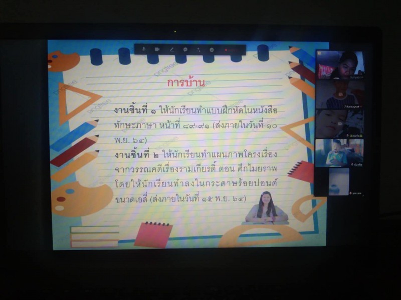 ๑๖ พ.ย.๒๕๖๔ จัดการเรียนการสอน ภาคเรียนที่ ๒ ประจำปีการศึกษา ๒๕๖๔ ผ่านระบบ On line (Line meeting) On Demand และ On Hand ระดับชั้นประถมศึกษาปีที่ ๑-๖