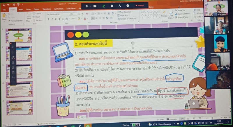 การจัดการเรียนการสอนออนไลน์ ภาคเรียนที่ ๒ ประจำปีการศึกษา ๒๕๖๔ ผ่านระบบ On line (Line meeting) On Demand และ On Hand ระดับชั้นประถมศึกษาปีที่ ๑-๖ ในวันที่ ๒๒ พฤศจิกายน ๒๕๖๔