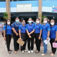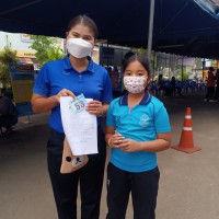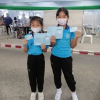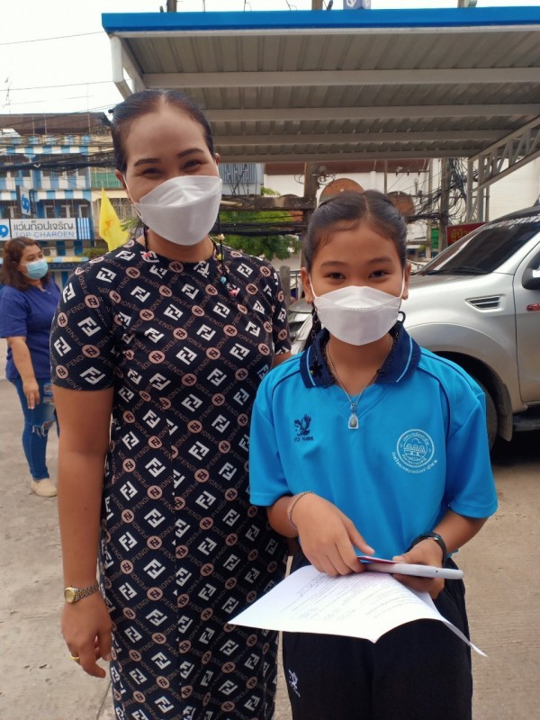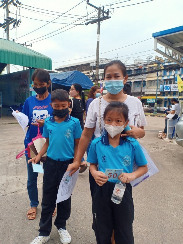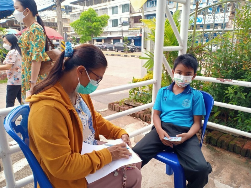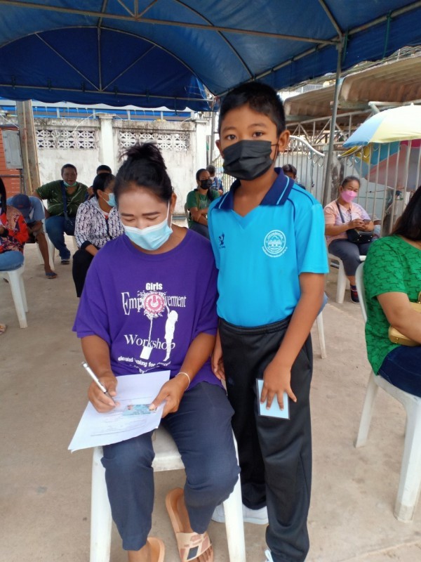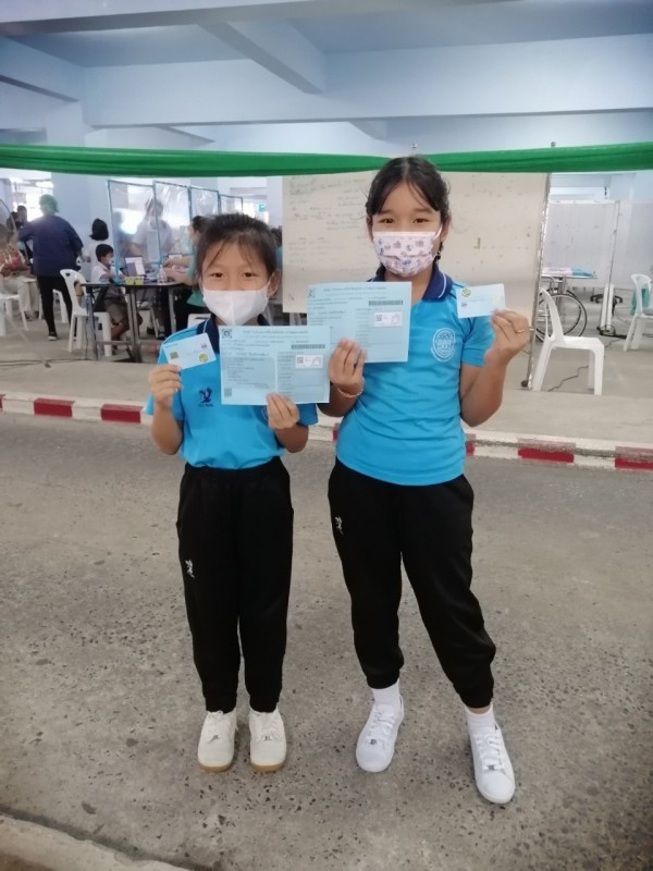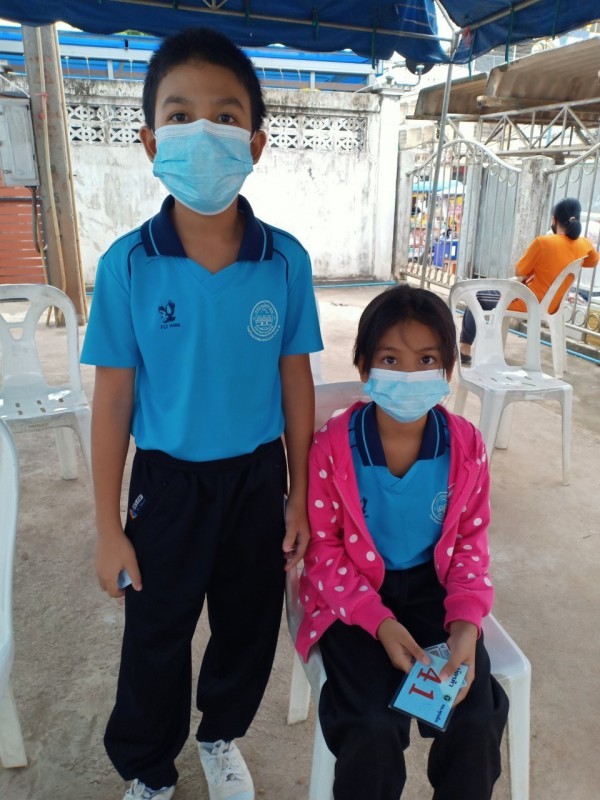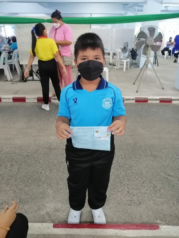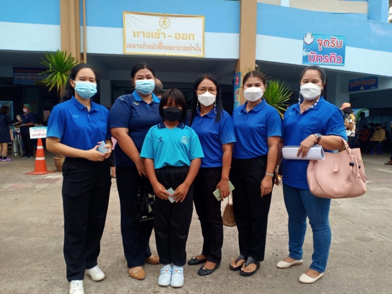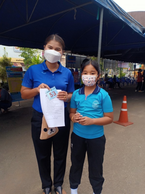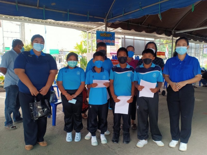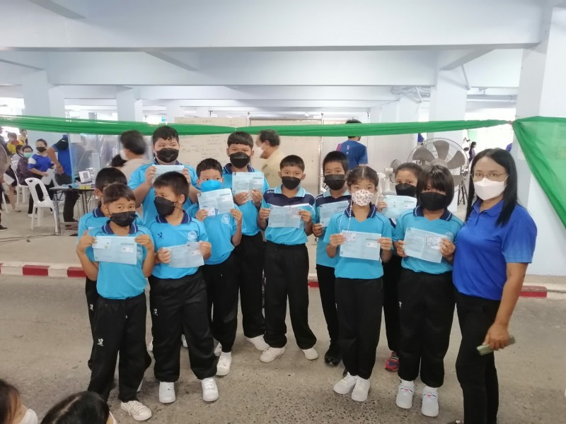 นักเรียนระดับชั้นประถมศึกษาปีที่ 3-5 ไปรับวัคซีนที่ได้รับจัดสรรวัคซีน Pfizer ฝาส้ม สำหรับเด็กอายุ 5-11 ปี ณ โรงพยาบาลพุนพิน