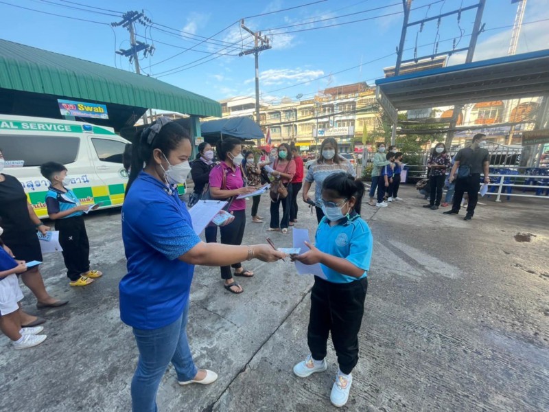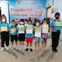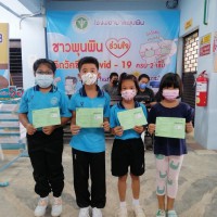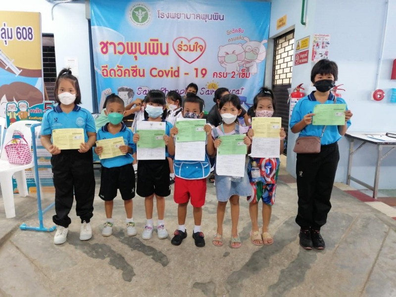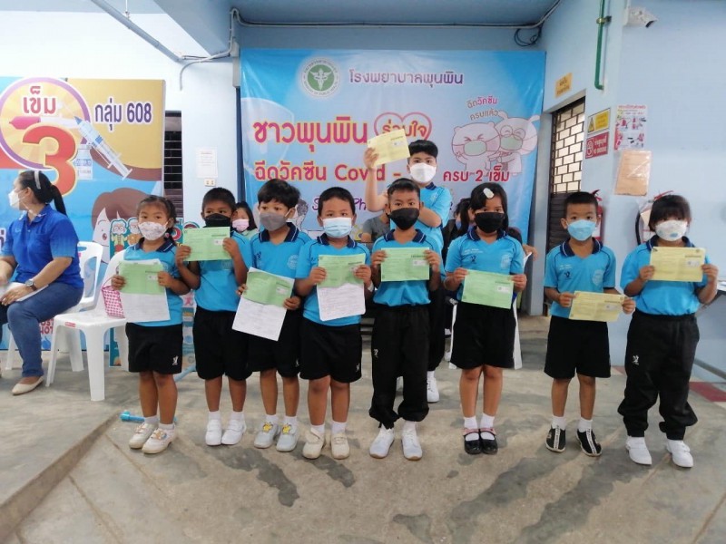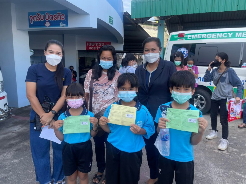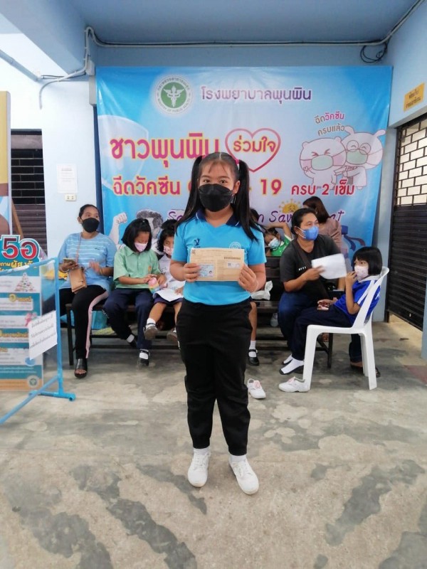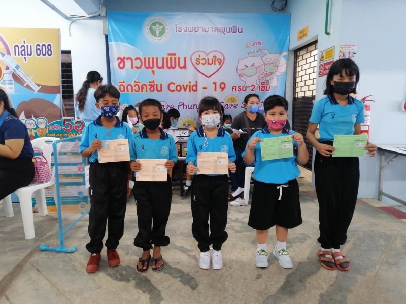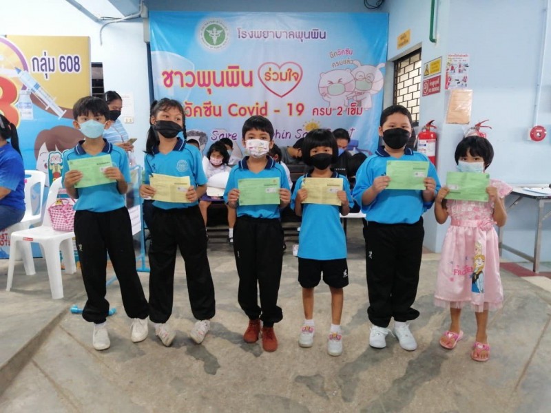 นักเรียนโรงเรียนเทศบาลเมืองท่าข้าม 2 อายุต่ำกว่า 11 ปี เข้ารับวัคซีนเพื่อป้องกันโรคระบาดโควิด-19 ณ โรงพยาบาลพุนพิน