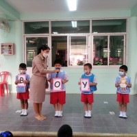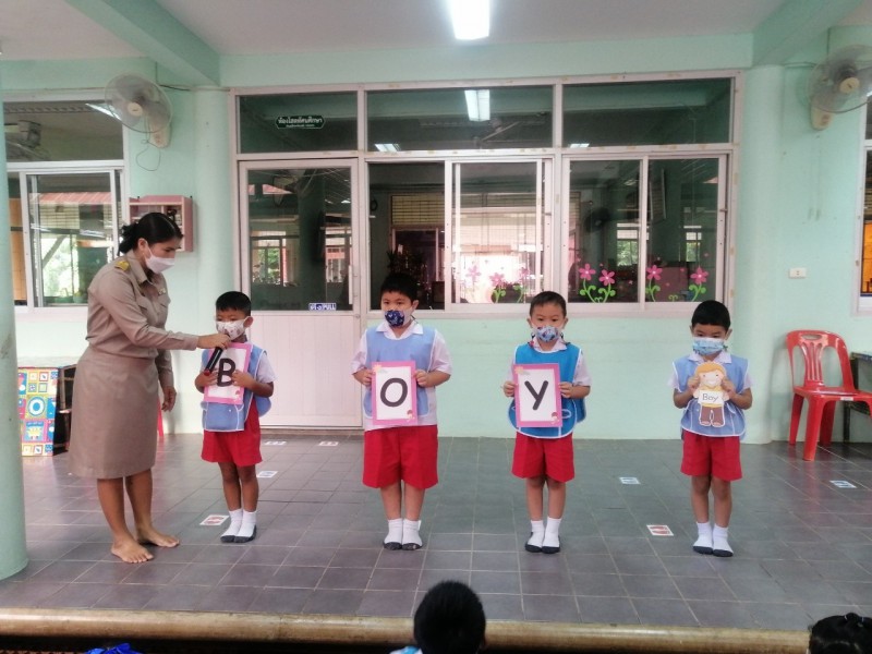 กิจกรรม English is fun ระดับชั้นอนุบาล ๑-๓ และศูนย์พัฒนาเล็กเด็กชุมชนฝ่ายท่า (เจริญเวช)