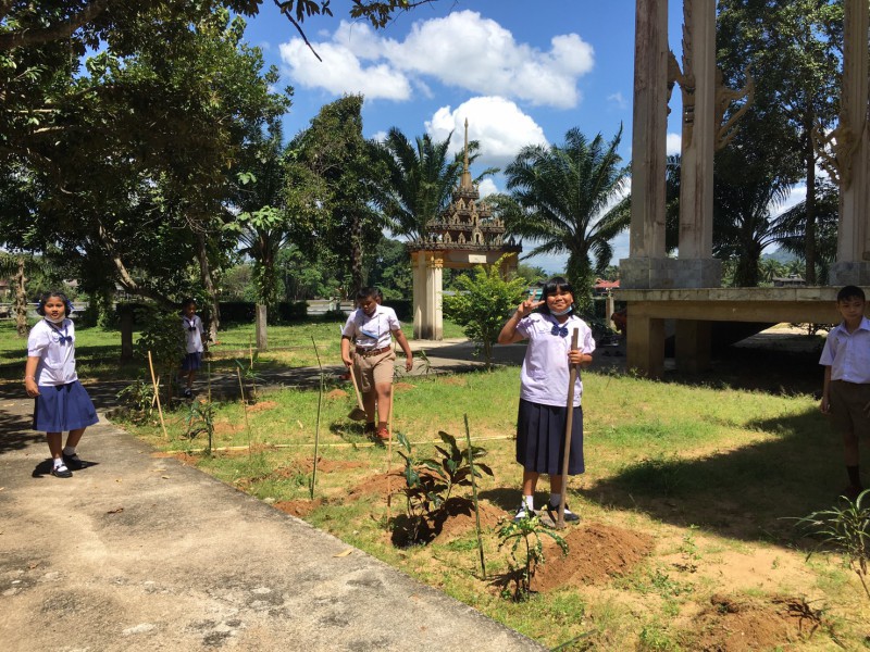 #โดยปลูกตันโกศล และต้นมะฮอกกานี จำนวน 90 เพื่อให้ครู บุคลากรทางการศึกษา และนักเรียน ได้รวมพลังแสดงความจงรักภักดี และสร้างจิตสำนึกในการเทิดทูนสถาบันพระมหากษัตริย์ ประกอบด้วย พิธีทำบุญตักบาตรถวายพระราชกุศล และกิจกรรมสาธารณะประโยชน์ |