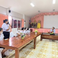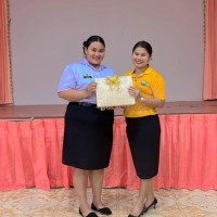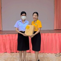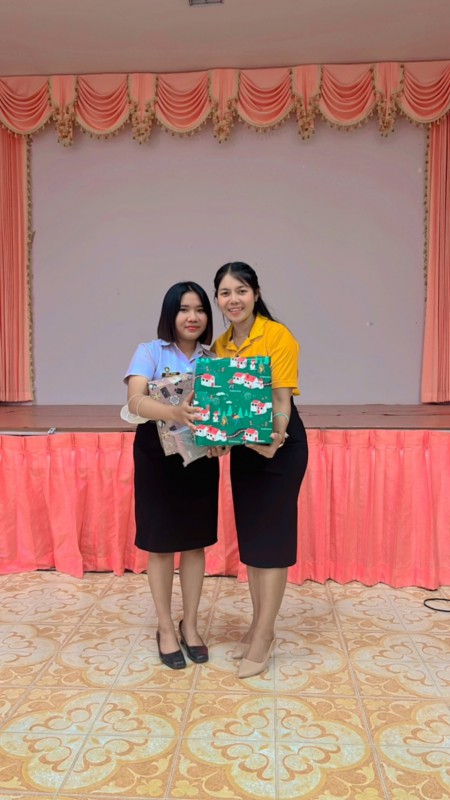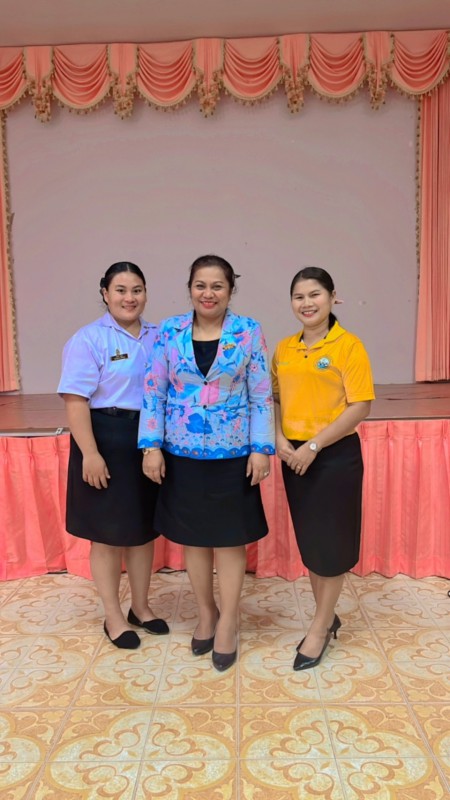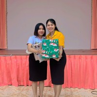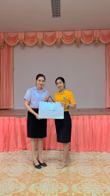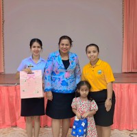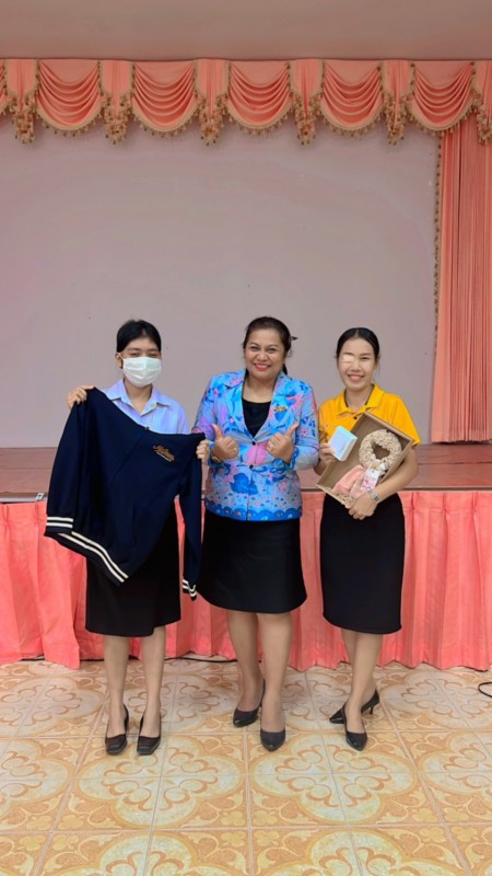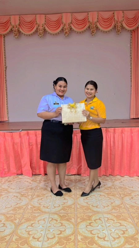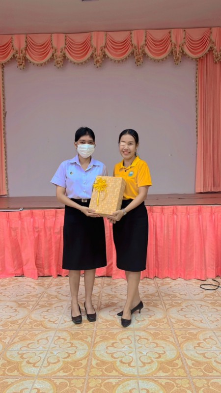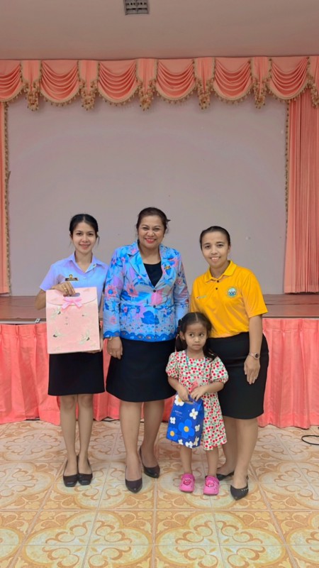 ผู้อำนวยการสถานศึกษาโรงเรียนเทศบาลเมืองท่าข้าม ๒ และคณะครูระดับชั้นอนุบาลร่วมแสดงความยินดีและมอบของที่ระลึกให้กับนักศึกษาฝึกประสบการณ์วิชาชีพครู