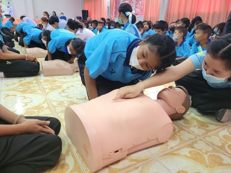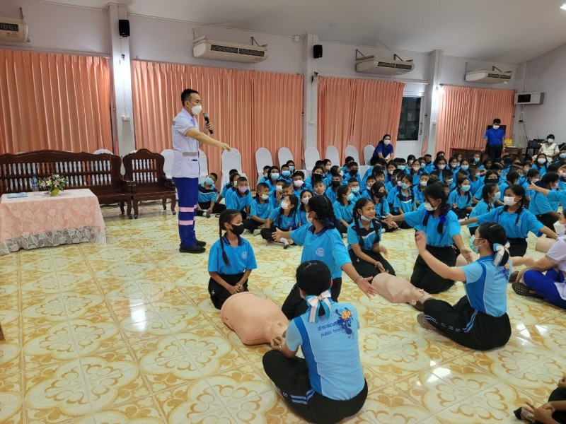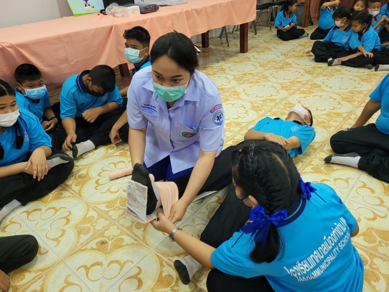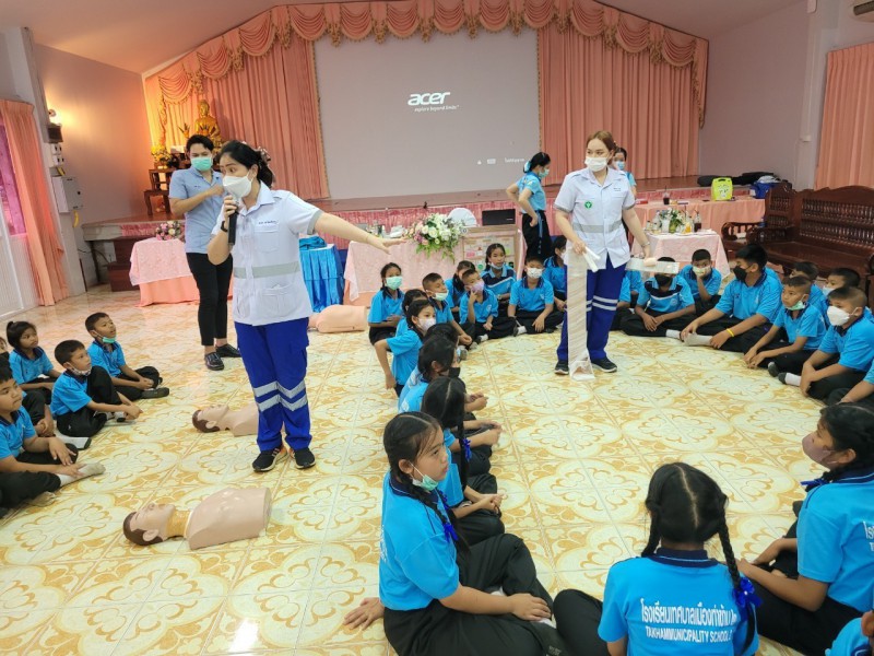 วันพุธที่ 1 มีนาคม 2566 นางวสุ ประดิษฐพร นายกเทศมนตรีเมืองท่าข้าม เป็นประธานในพิธีเปิดและบรรยายพิเศษ โครงการส่งเสริมสุขภาพและอนามัยนักเรียนโรงเรียนเทศบาลเมืองท่าข้าม 2 พร้อมทั้งนางสาวชรินรัตน์ กฤติยารัตน์ เลขานุการนายกเทศมนตรีฯ และนายเทียรชัย นาคกลัด ผู้อำนวยการกองการศึกษา ซึ่งในโครงการดังกล่าวได้เชิญวิทยากรจากโรงพยาบาลพุนพิน มาให้ความรู้ในการสร้างทักษะปฐมพยาบาลเบื้องต้น/CPR และการใช้ยาสามัญประจำบ้านอย่างถูกวิธีให้แก่นักเรียน ครู และบุคลากร ในการนี้ทางโรงเรียนเทศบาลเมืองท่าข้าม 2 ขอขอบพระคุณมา ณ โอกาสนี้ |