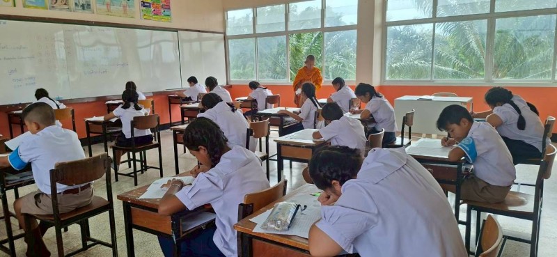 นักเรียนชั้นประะถมศึกษาปีที่ ๕-๖ สอบความรู้ ธรรมศึกษาชั้นตรีและชั้นโท (ประถมศึกษา)