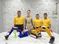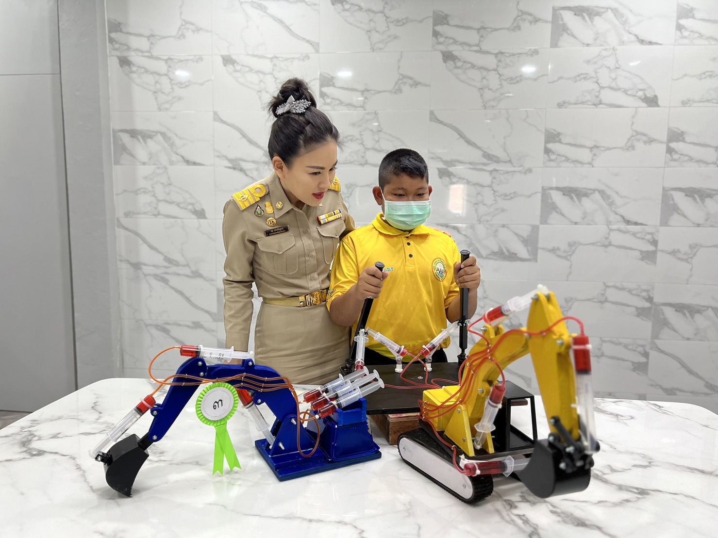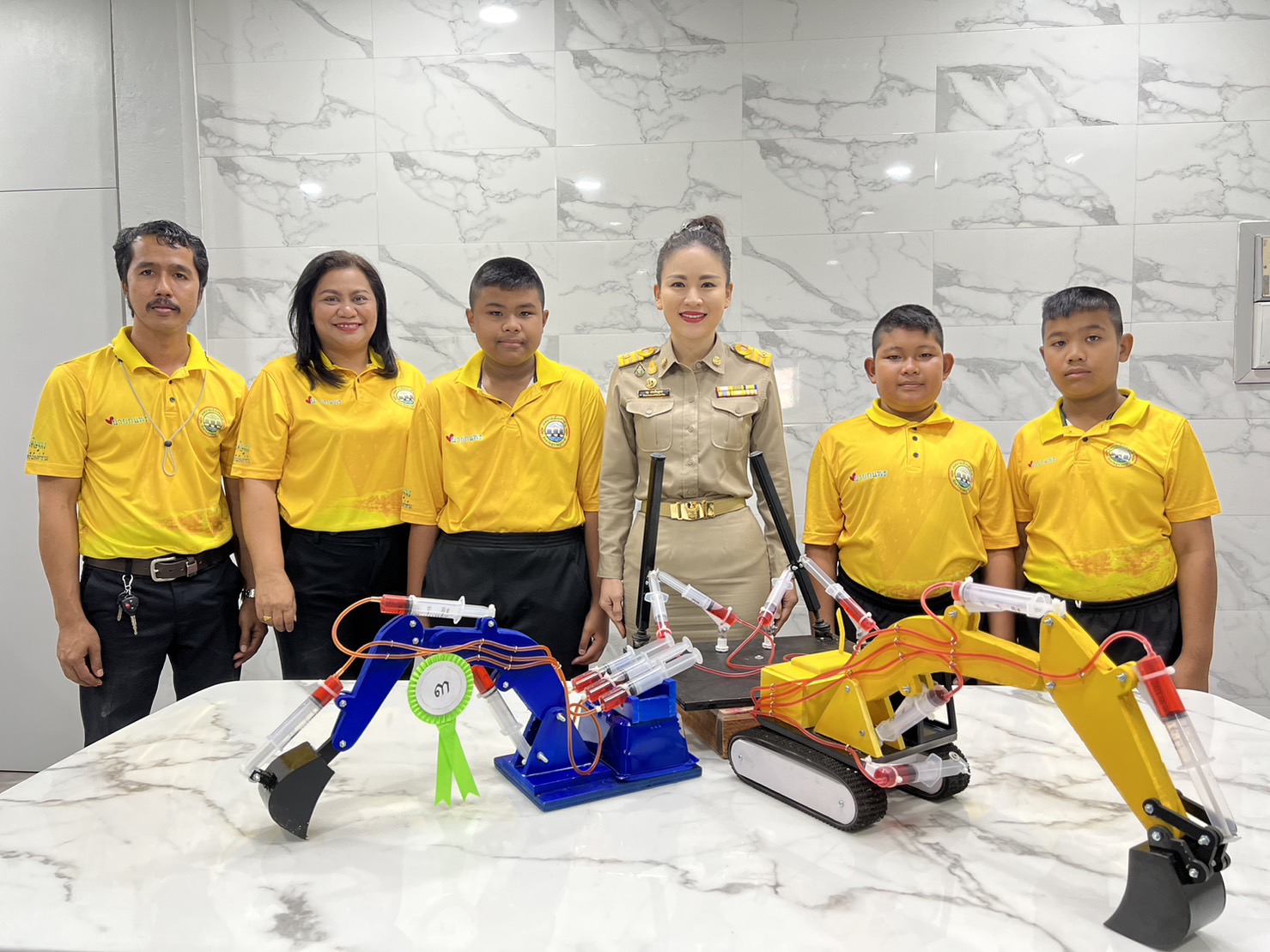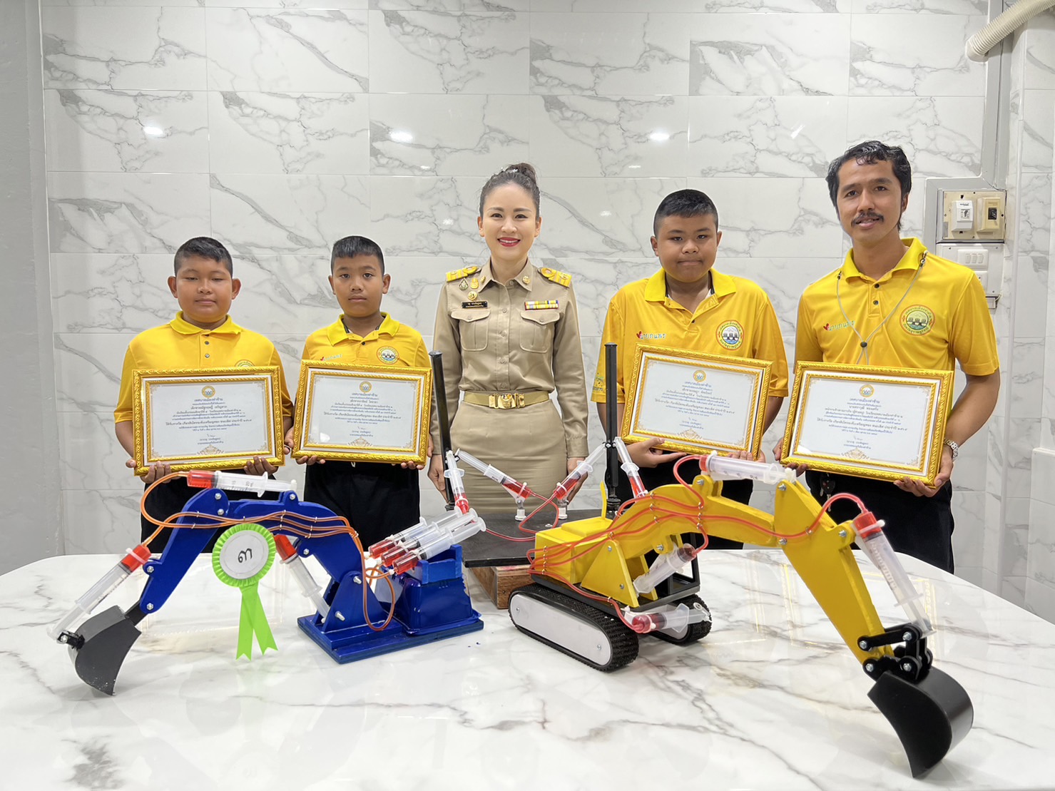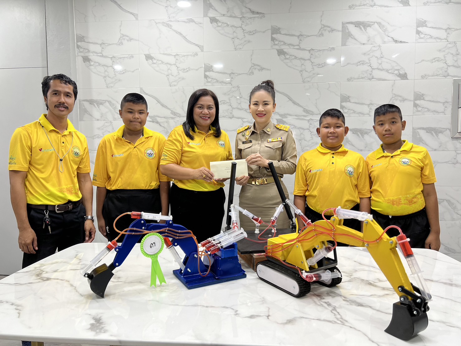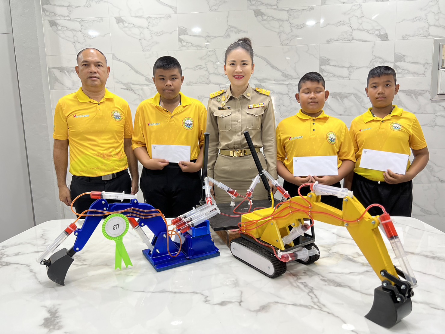 นายกเทศมนตรี นางวสุ ประดิษฐพร นายกเทศมนตรีเมืองท่าข้าม ให้กำลังใจ ผู้บริหารโรงเรียนเทศบาลเมืองท่าข้าม ๒ ครูผู้ฝึกซ้อมและนักเรียนชนะเลิศเหรียญทองอันดับ 1 การแข่งขันประดิษฐ์เศษวัสดุด ป.4-6