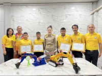 | วันที่ 10 ตุลาคม 2565 ที่ห้องทำงานนายกเทศมนตรี นางวสุ ประดิษฐพร นายกเทศมนตรีเมืองท่าข้าม ให้การต้อนรับนางธนัชพร โอวรารินท์ ผู้อำนวยการโรงเรียนเทศบาลเมืองท่าข้าม 2 ที่นำคณะนักเรียนและครูผู้ฝึกซ้อมซึ่งคว้ารางวัลชนะเลิศเหรียญทองอันดับ 1 จากการแข่งขันประดิษฐ์เศษวัสดุ ป.4-6 ในงานมหกรรมการจัดการศึกษาท้องถิ่น ระดับประเทศ ครั้งที่ 12 ประจำปี 2565 ภายใต้แนวคิด ALL FOR Education ณ เทศบาลเมืองทุ่งสง จ.นครศรีธรรมราช ประกอบด้วย เด็กชายณัฐกฤษฎ์ เจริญลาภ, เด็กชายอาทิตย์ โคตรดา, เด็กชายเจษฎา พิศภักตร์ นักเรียนชั้นประถมศึกษาปีที่ 5 และ นายศราวุธ ทองเคร็ง ครูผู้ฝึกซ้อม ในการนี้ นายกเทศมนตรีฯได้ชมสิ่งประดิษฐ์พร้อมทั้ง กล่าวชื่นชมในความตั้งใจและความมุ่งมั่นของทุกคน จนนำมาสู่รางวัลแห่งความสำเร็จ สร้างชื่อเสียงให้กับเทศบาลเมืองท่าข้าม โดยนายกเทศมนตรีฯ ได้มอบเกียรติบัตรรวมถึงเงินรางวัลจากทุนทรัพย์ส่วนตัวเพื่อเป็นขวัญกำลังใจให้กับทีมด้วย |