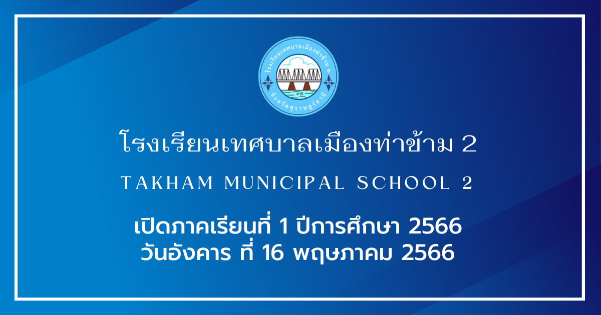 โรงเรียนเทศบาลเมืองท่าข้าม 2 เปิดภาคเรียนที่ 1 ปีการศึกษา 2566 วันอังคาร ที่ 16 พฤษภาคม 2566